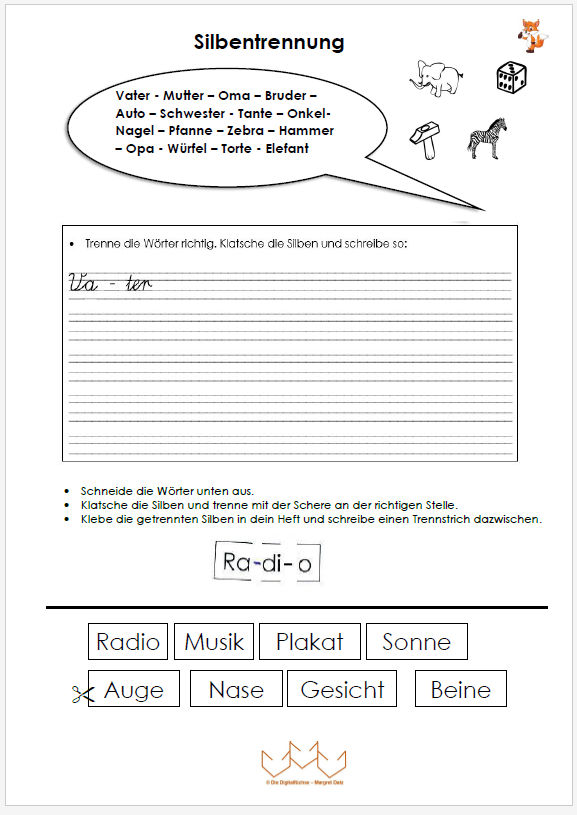 Arbeitsblatt - "Silbentrennung" (1968 Downloads ) | Auch im Word Format, damit Digitalfüchse die Vorlage bearbeiten können.